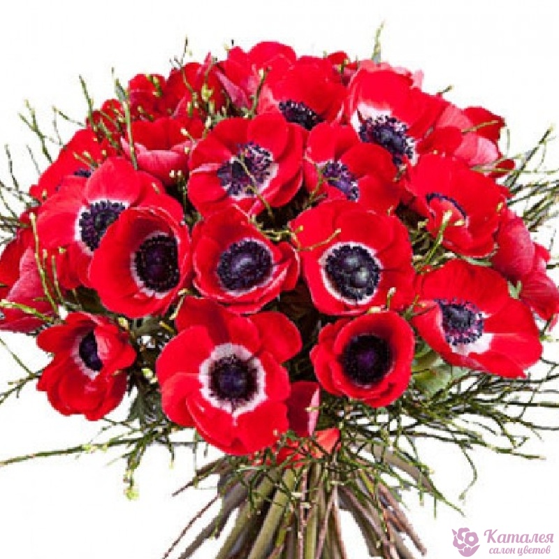 Букет из 35 красных анемонов