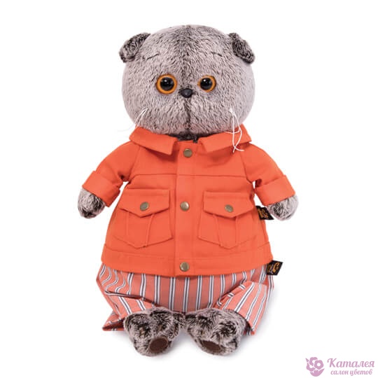 Игрушка Bacik&Co в оранжевой куртке, 19 см. Для дополнения к цветам, и для индивидуального подарка!