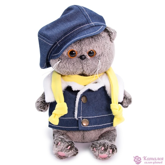 Игрушка Bacik&Co в джинсовом жилете, 20 см. Для дополнения к цветам, и для индивидуального подарка!