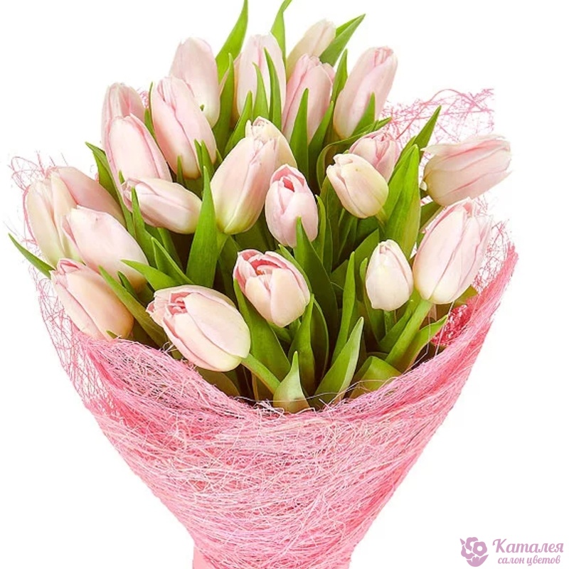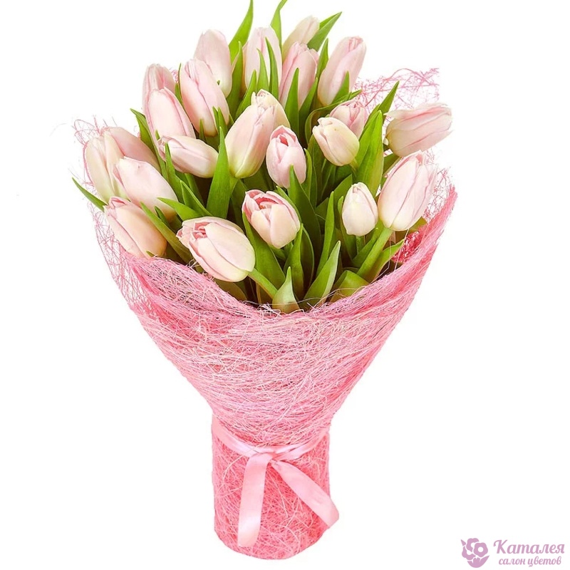 Букет состоит из 21 розовый тюльпан, красивая упаковка, атласная лента.