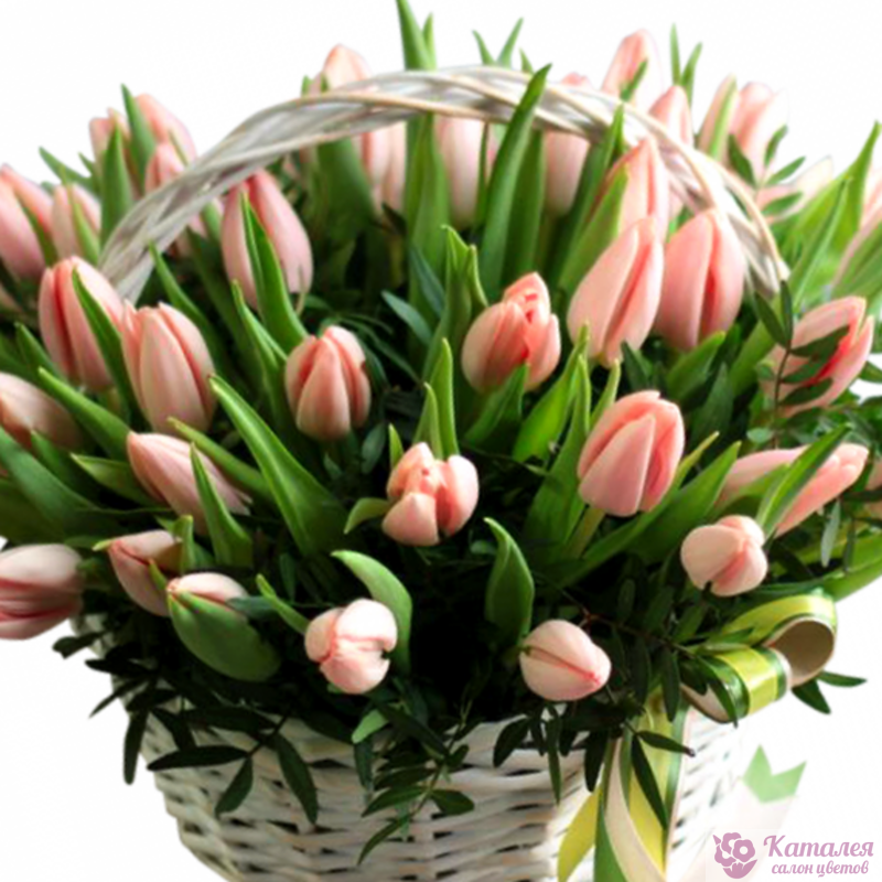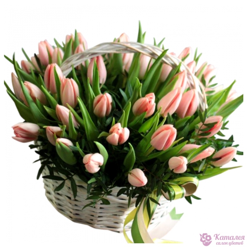 Розовые тюльпаны в корзине