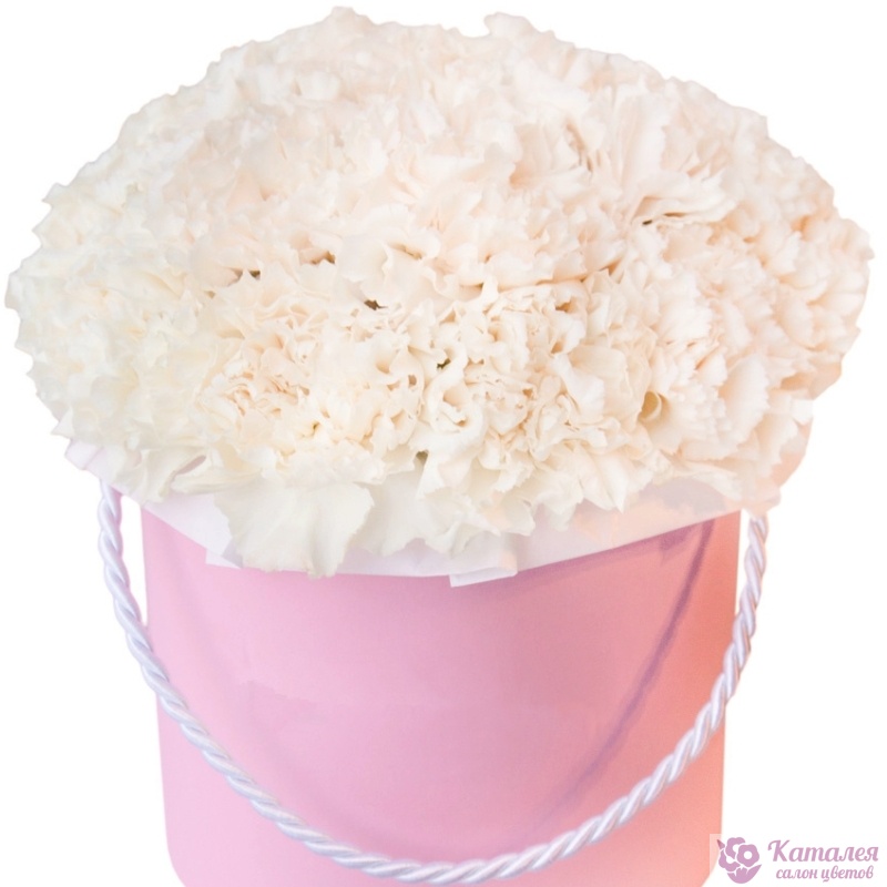 Букет из 25 белых гвоздик,в коробке