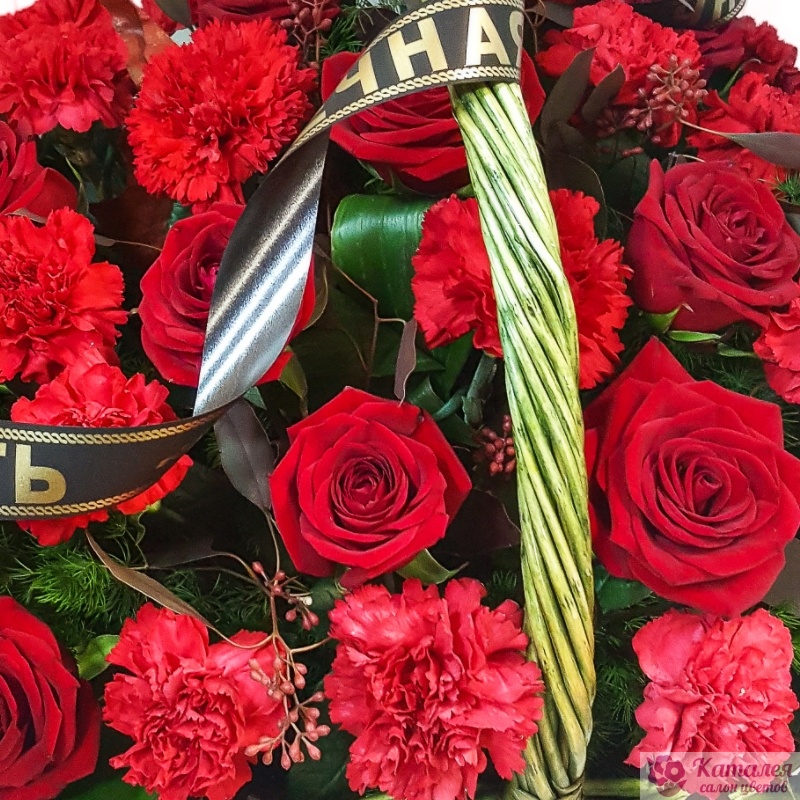 Корзина траурная из роз и гвоздик