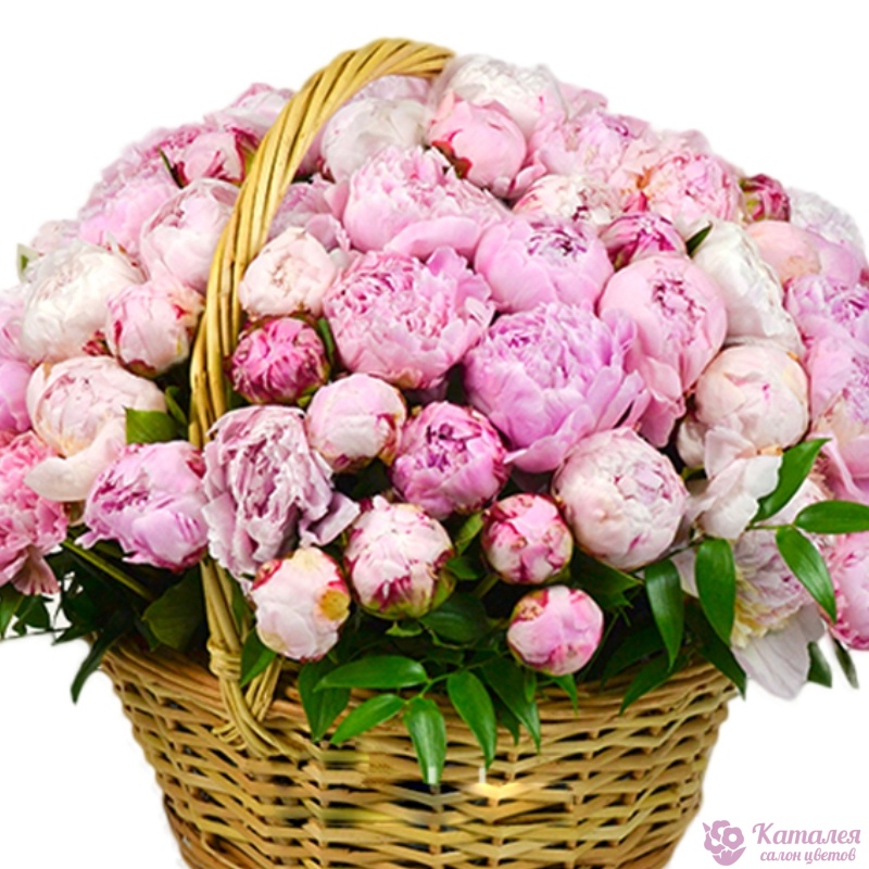 Корзина из 75 розовых пионов