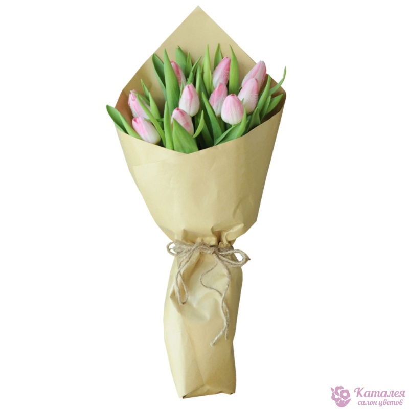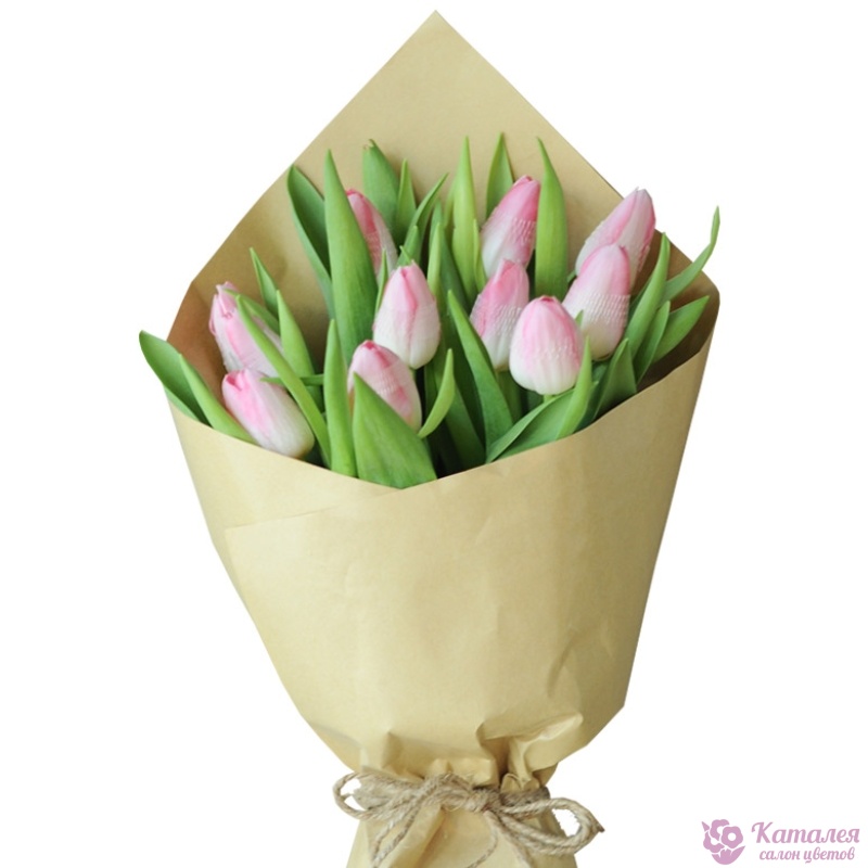 Букет из 9 розовых тюльпанов в крафте