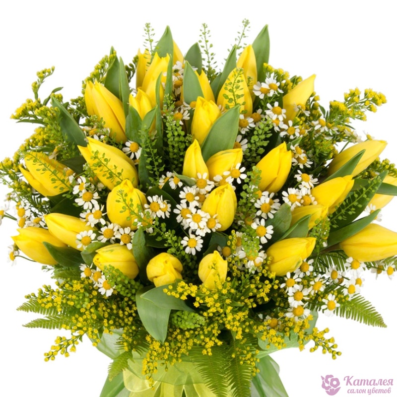 Мимоза 6 шт., Танацетум 4 шт., Тюльпан 31 шт. |