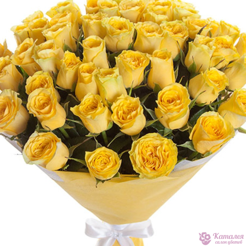 Букет состоит из 45 желтых роз, красивая упаковка, атласная лента.