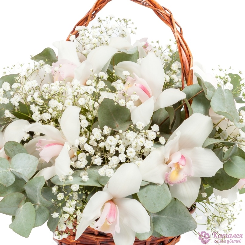Букет из орхидей с гипсофилой в корзине