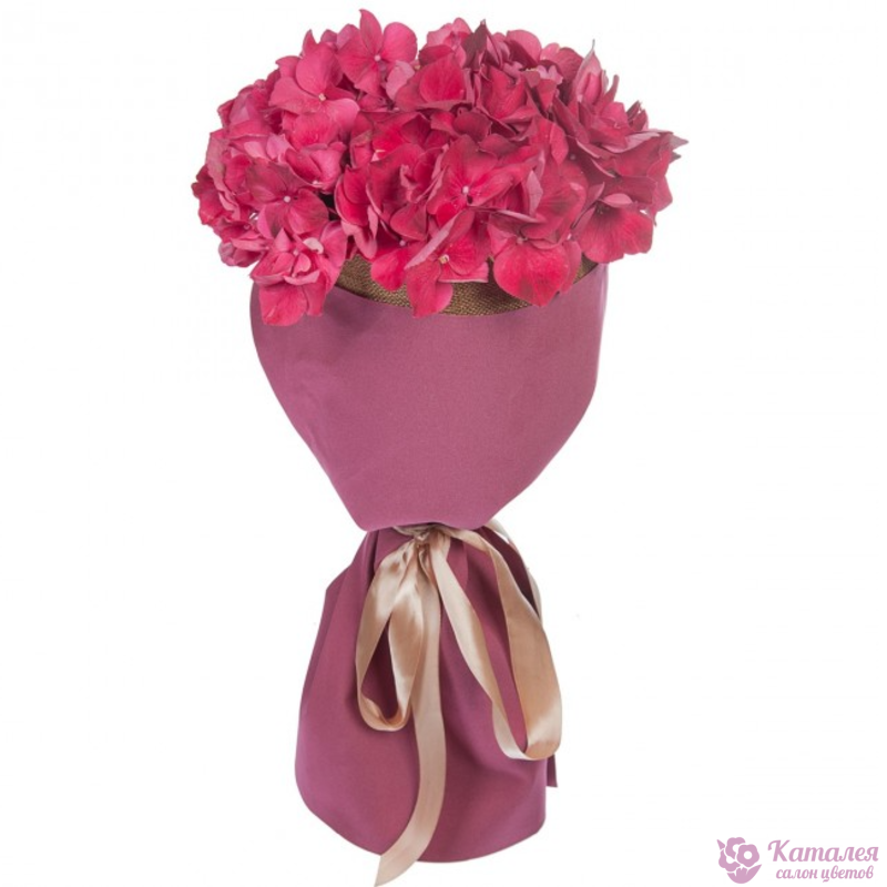 Букет состоит из 1 красная гортензия, красивая упаковка, атласная лента.