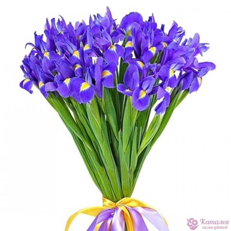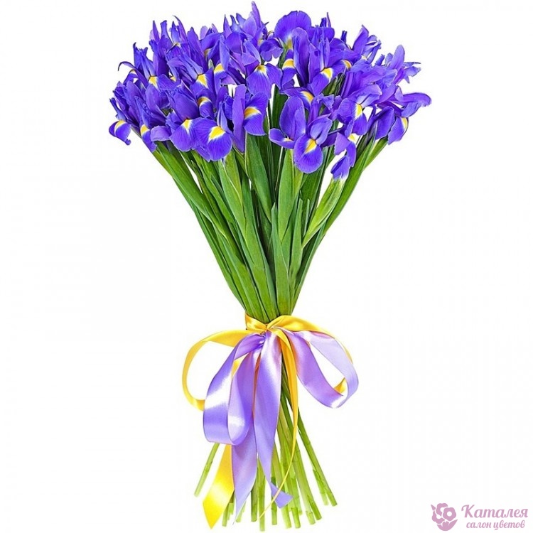 Букет состоит из 19 ирисов, прзрачная упаковка, атласная лента.