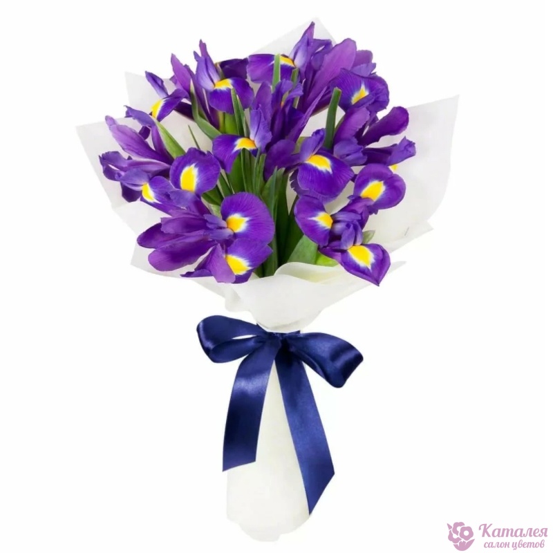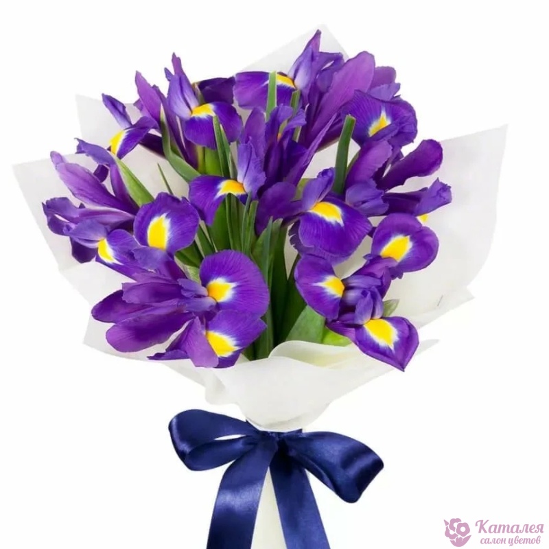 Букет состоит из 11 ирисов, красивая упаковка, атласная лента.