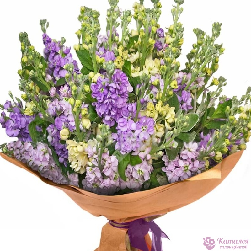 Букет из сиреневых маттиол в крафте