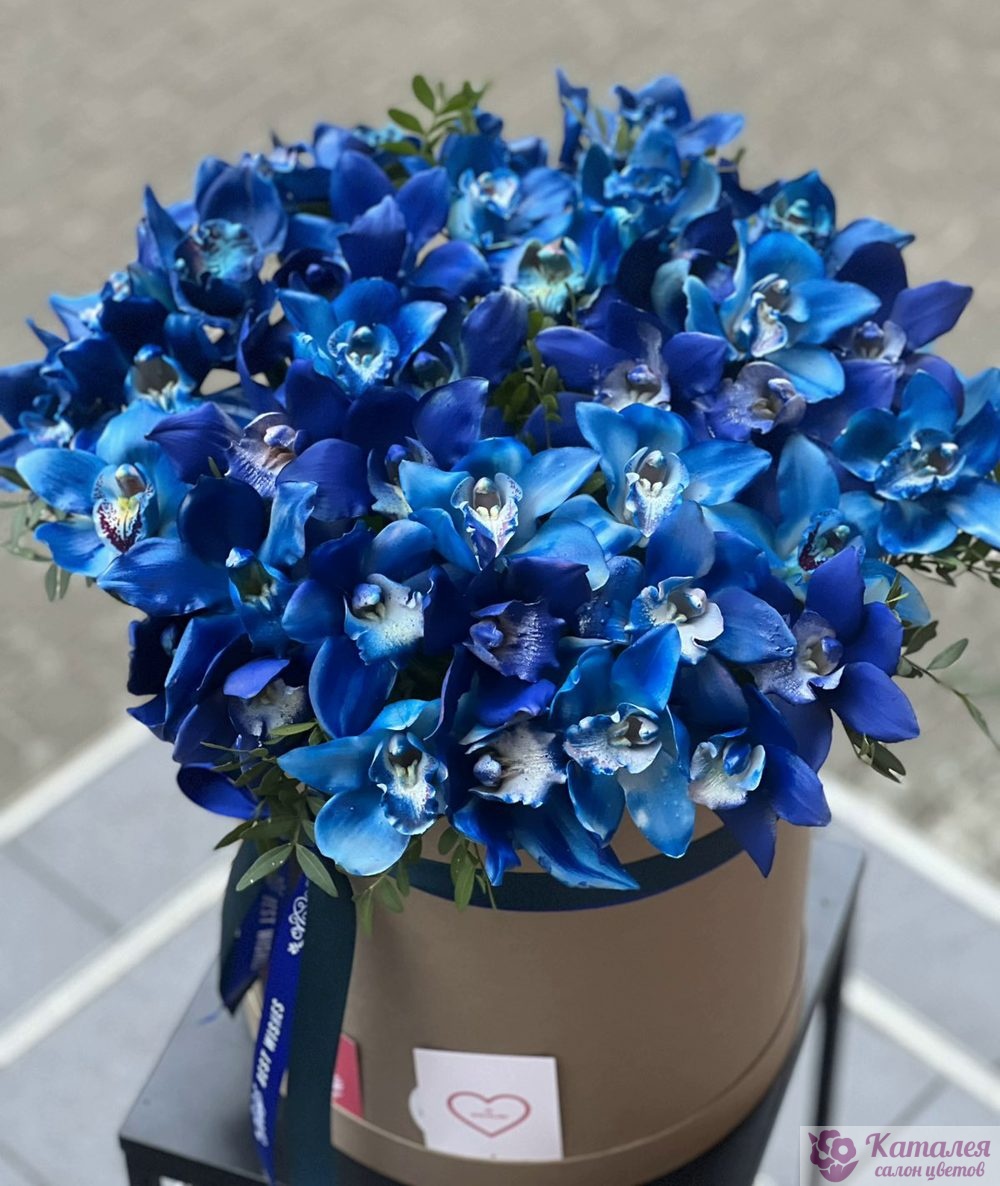51 синяя орхидея в коробке
