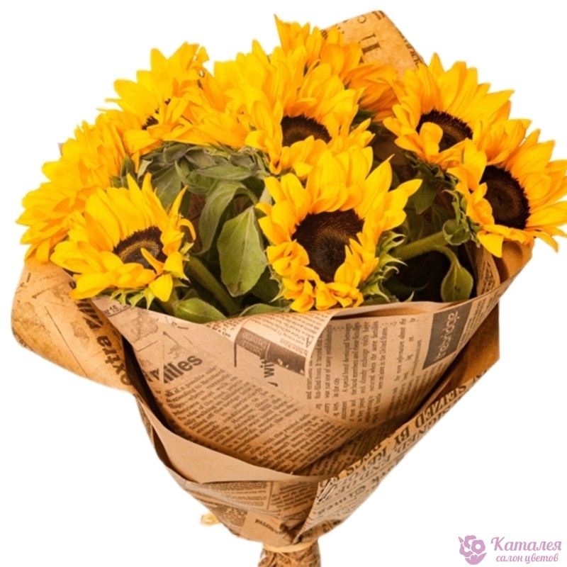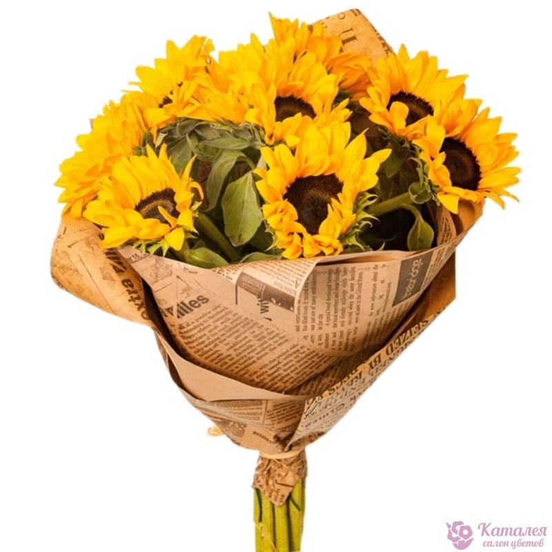 Букет из 9 подсолнухов в крафте