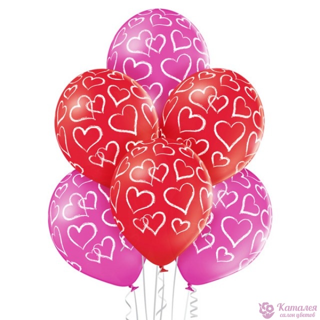 Воздушный шар "Сердца мелом/1 шт." для дополнения к цветам, на праздники и по любому радосному поводу!