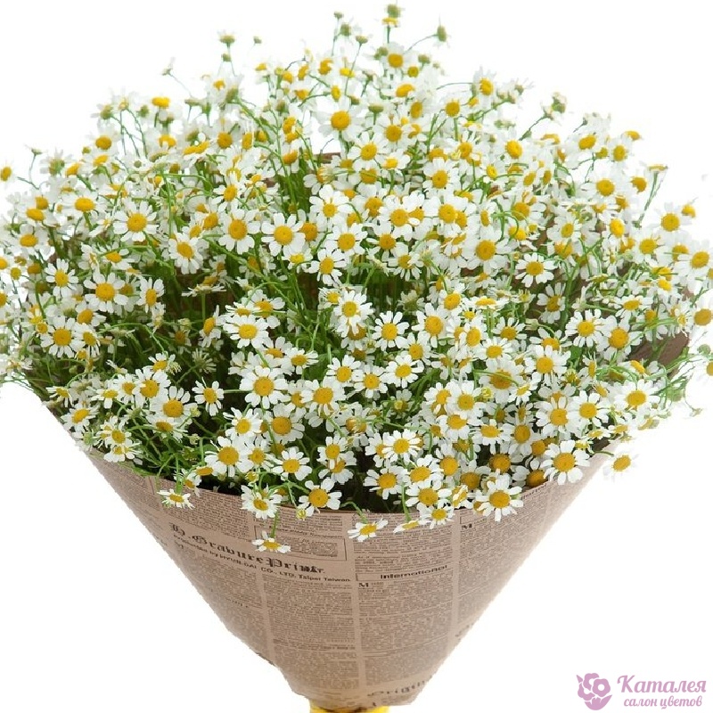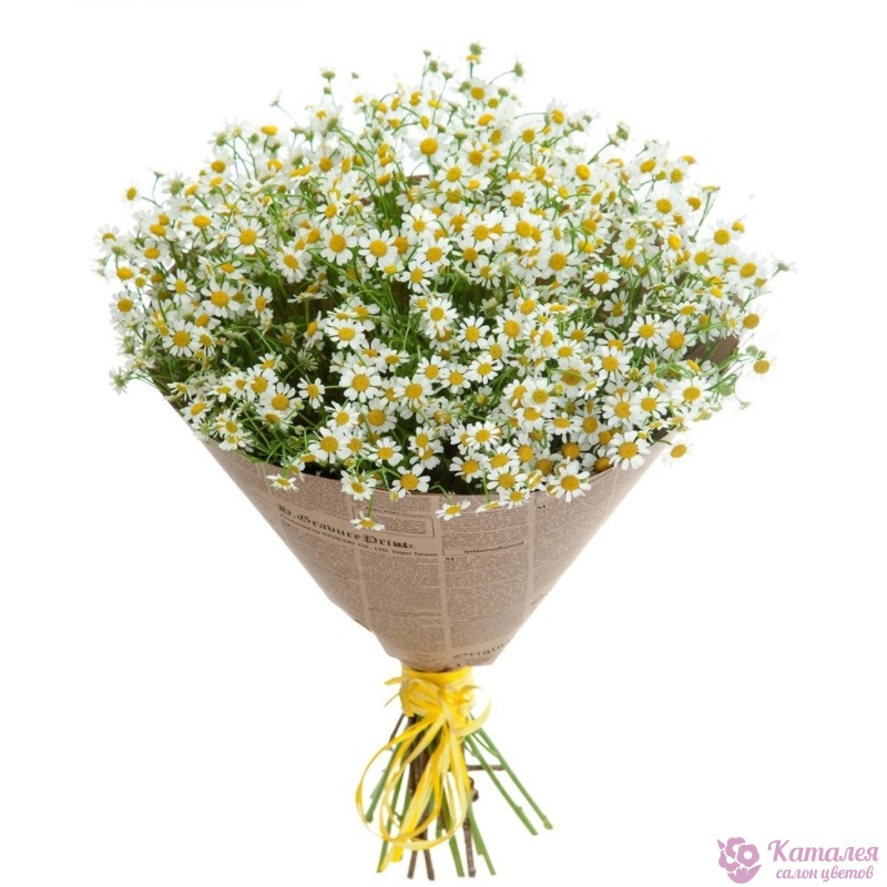 Букет состоит из 21 ветка танацетума, крафт, атласная лента.
