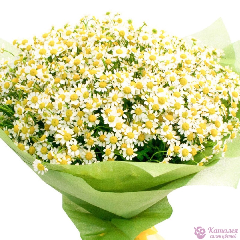 Букет состоит из 25 веток танацетума, красивая упаковка, атласная лента.