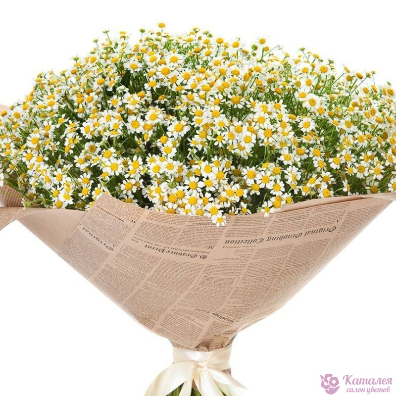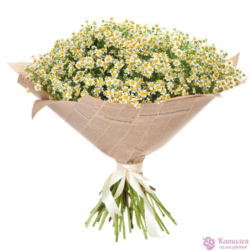 Букет состоит из 35 веток танацетума, крафт, атласная лента.