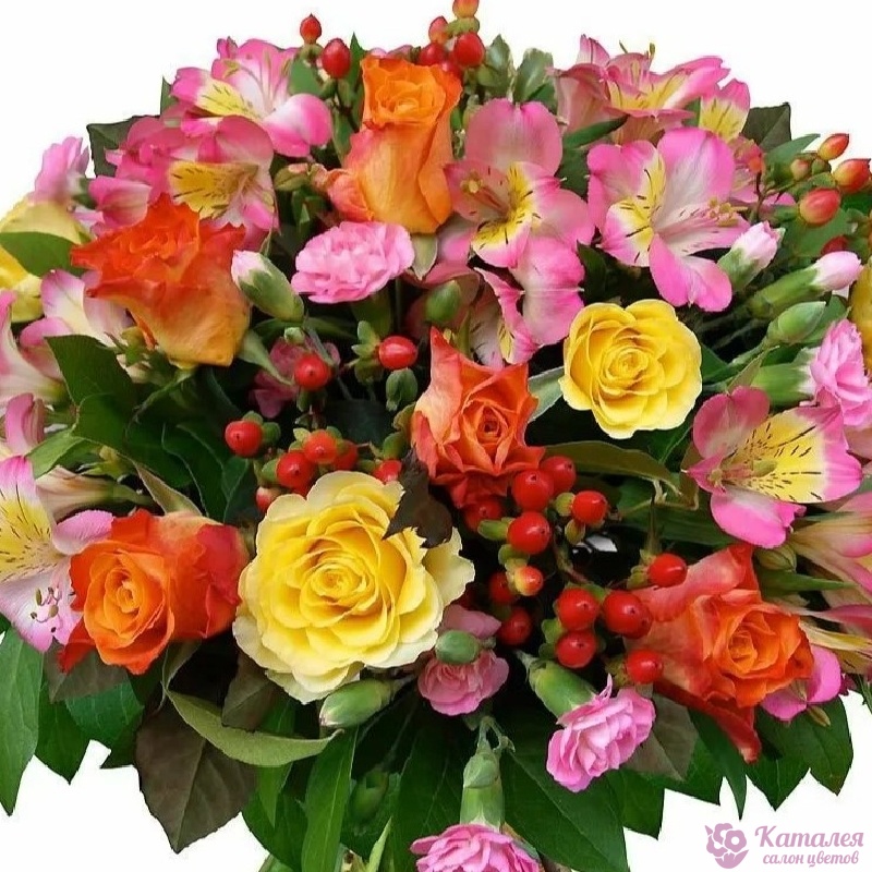 Альстромерия, Гвоздика, Гиперикум, Роза |
