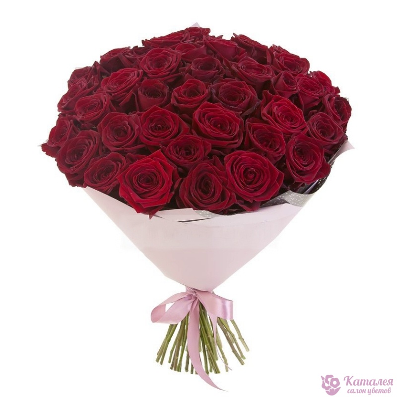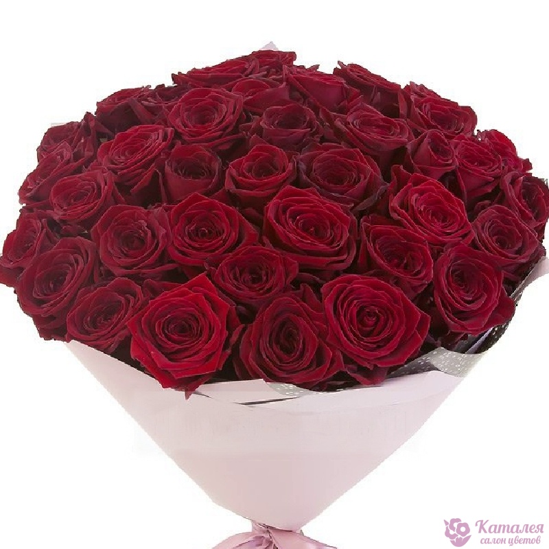 Букет состоит из 37 бордовых роз, крафт, атласная лента.