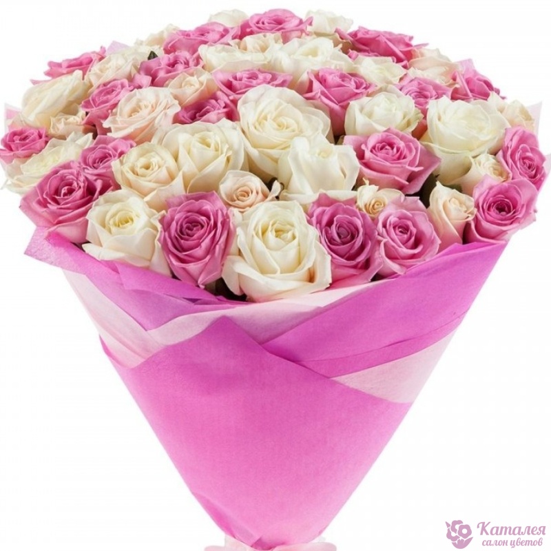 Букет из 55 розовых и белых роз
