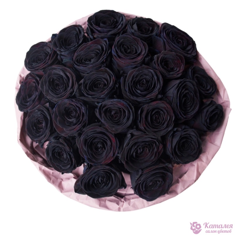 Букет состоит из 31 черная роза, крафт, атласная лента.