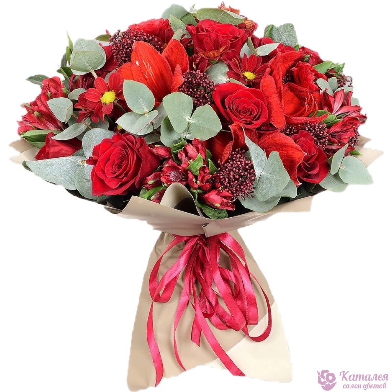 Альстромерия, Амариллис, Ранункулюс, Роза, Скиммия, Хризантема |