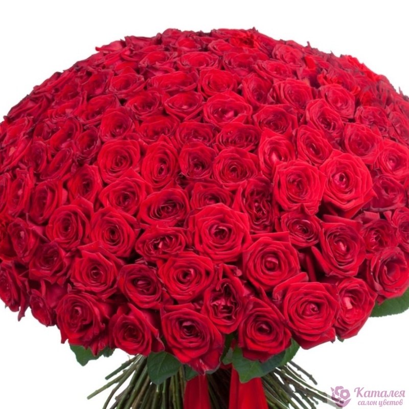 Букет состоит из 201 красная роза, прозрачная упаковка, атласная лента.