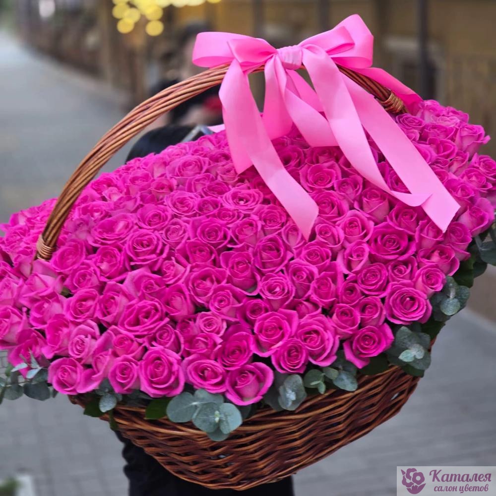 Акция! 201 красная роза в корзине