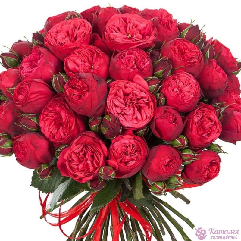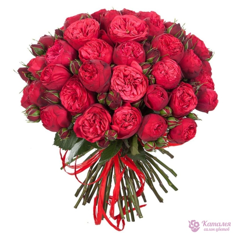Букет состоит из 31 ветка роз Red Piano, прозрачная упаковка, атласная лента.