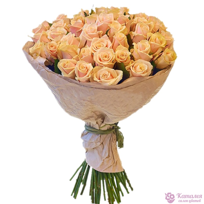 Букет состоит из 45 кремовых роз, крафт, атласная лента.