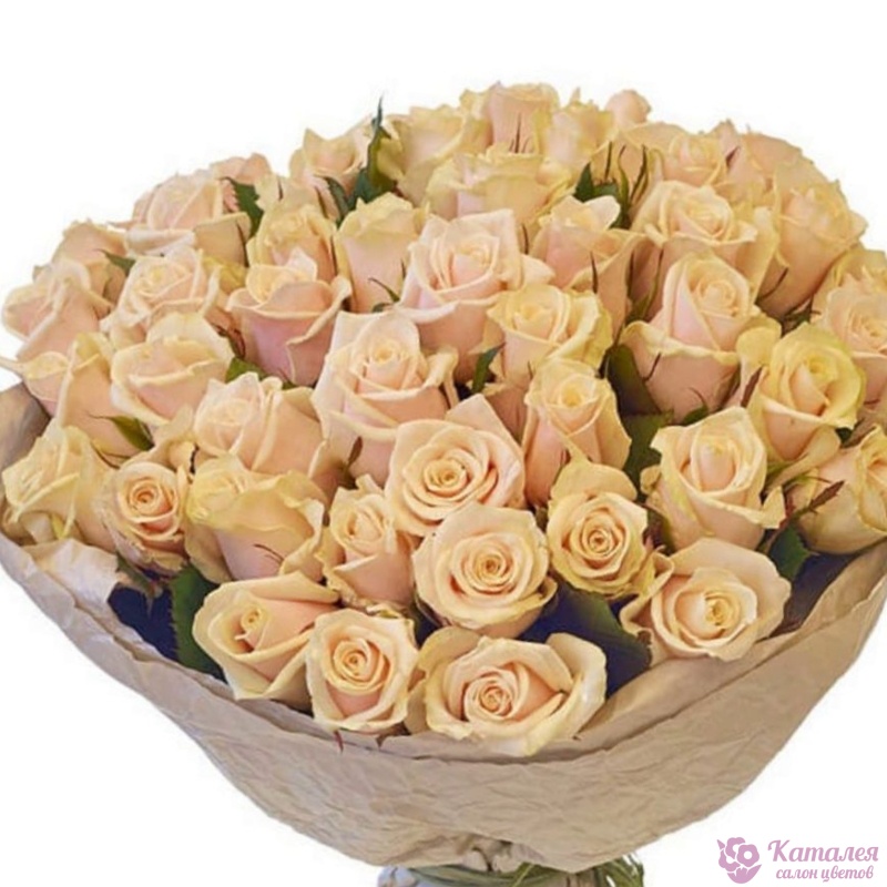 Букет состоит из 51 кремовая роза, крафт, атласная лента.