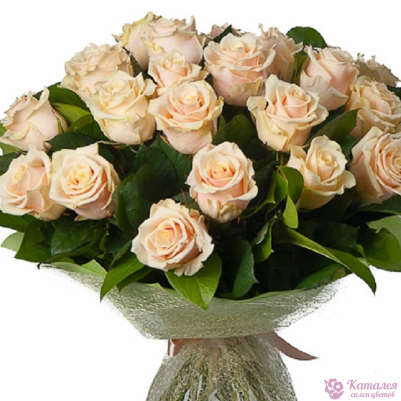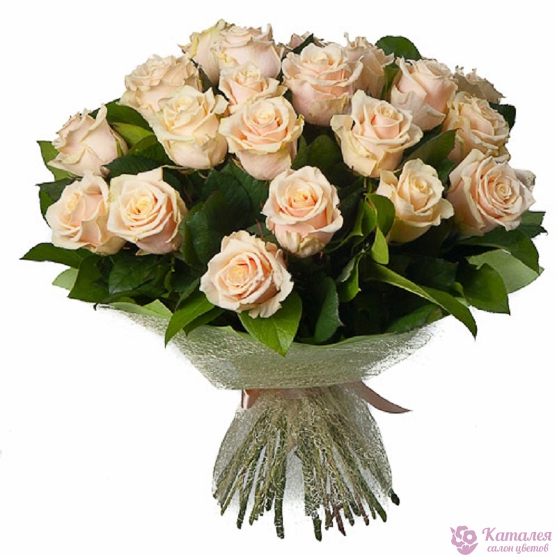 Букет состоит из 25 кремовых роз, красивая упаковка.