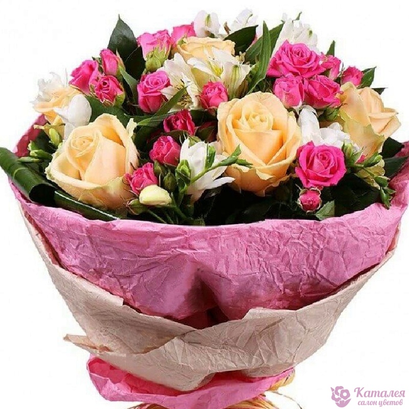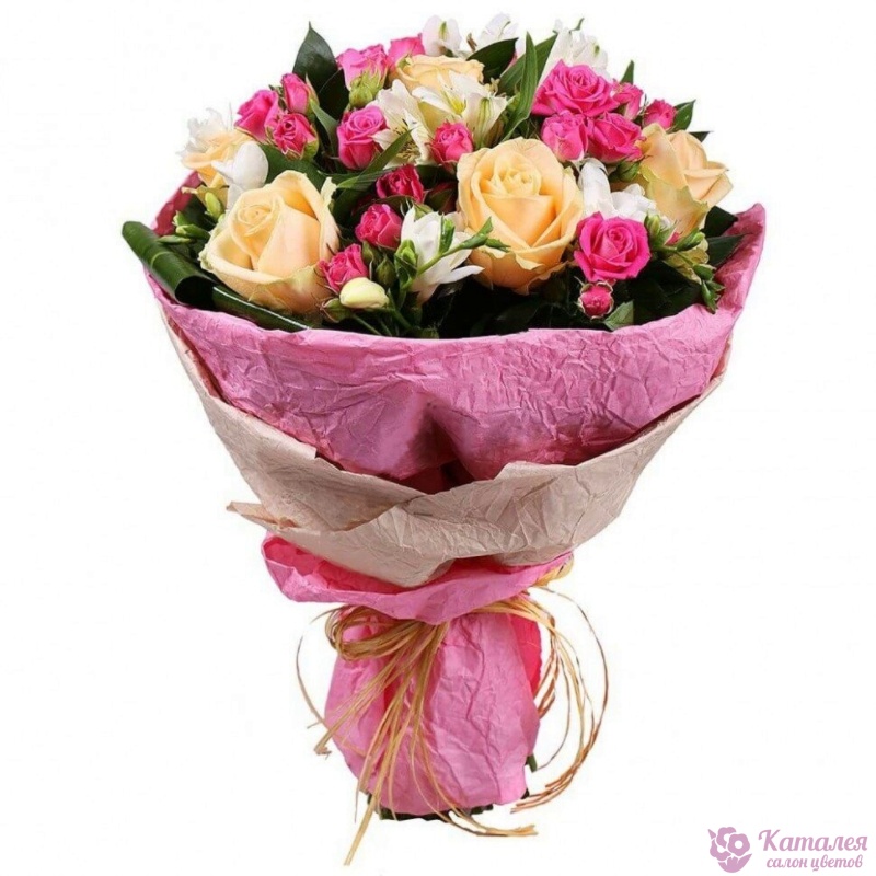 Альстромерия 2 шт., Роза 5 шт., Роза кустовая 4 шт., Фрезия 4 шт. |