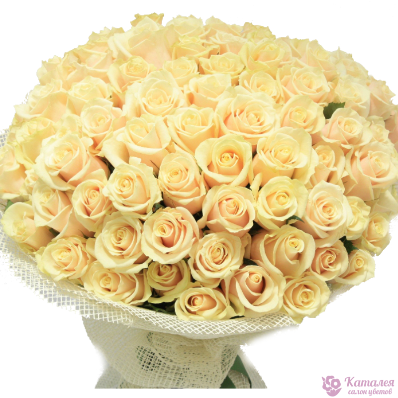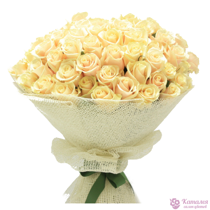 Букет состоит из 51 кремовая роза, крафт, атласная лента.