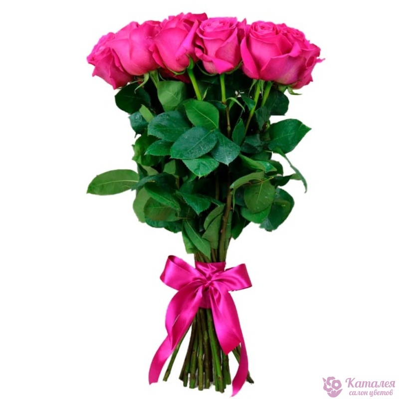 Букет состоит из 15 малиновых роз, прозрачная упаковка, атласная лента.