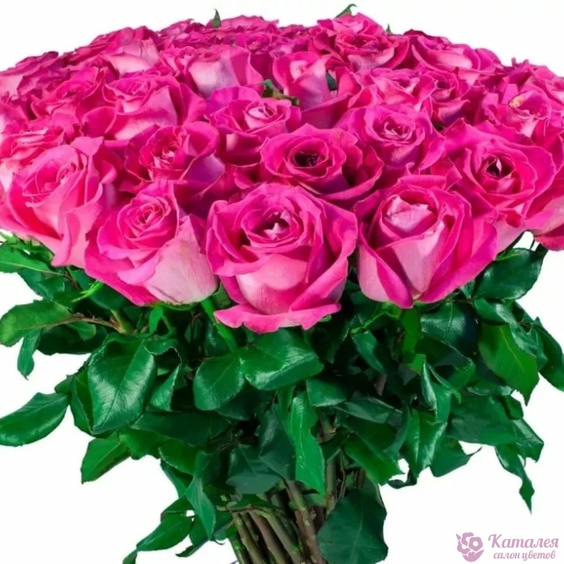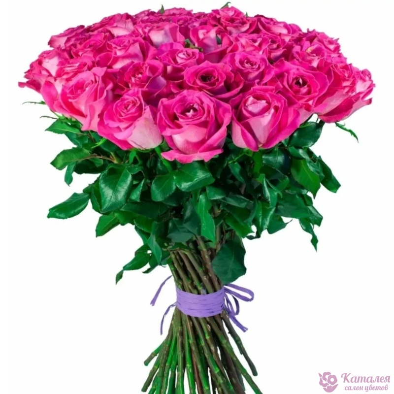 Букет состоит из 31 малиновая роза, прозрачная упаковка, атласная лента.