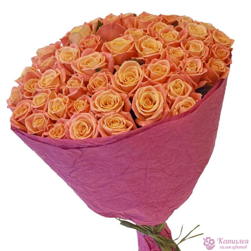 Букет состоит из 51 оранжевая роза, красивая упаковка, атласная лента.