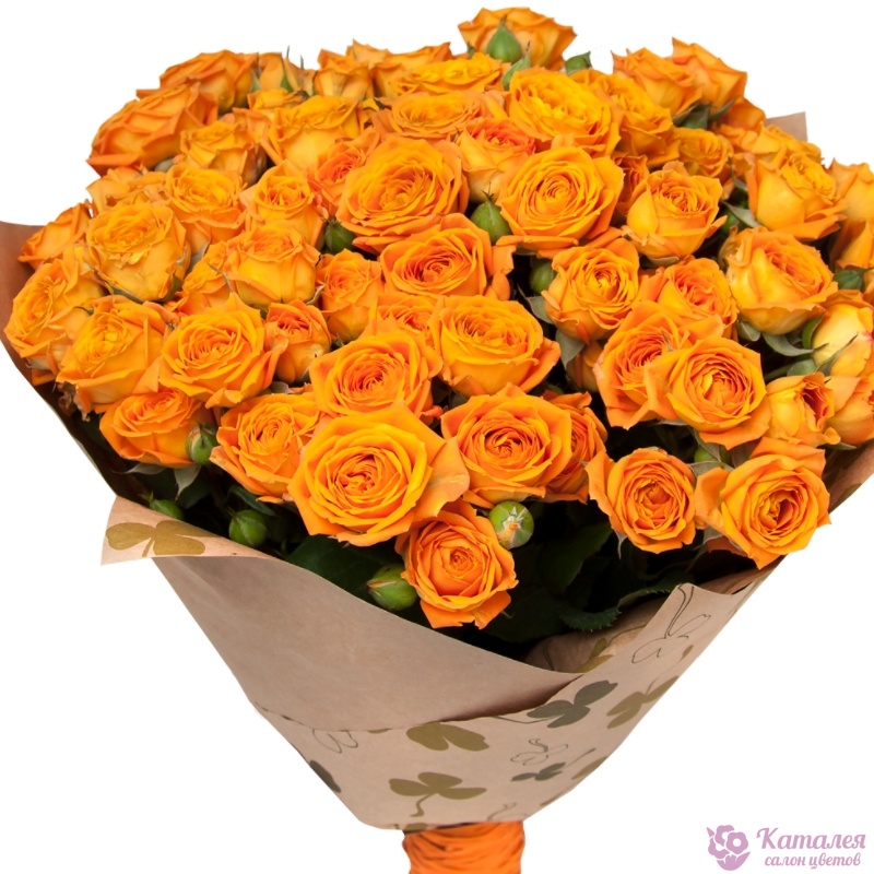Букет из 17 оранжевых кустовых роз в крафте
