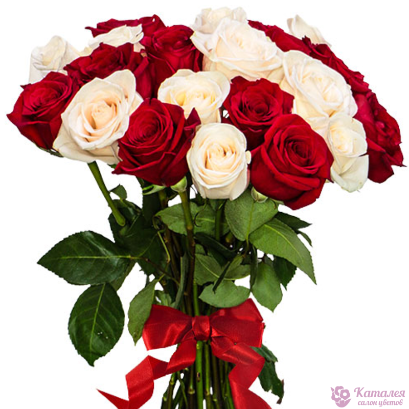 Букет состоит из 11 белых роз, 10 красных роз, прозрачная упаковка, атласная лента.