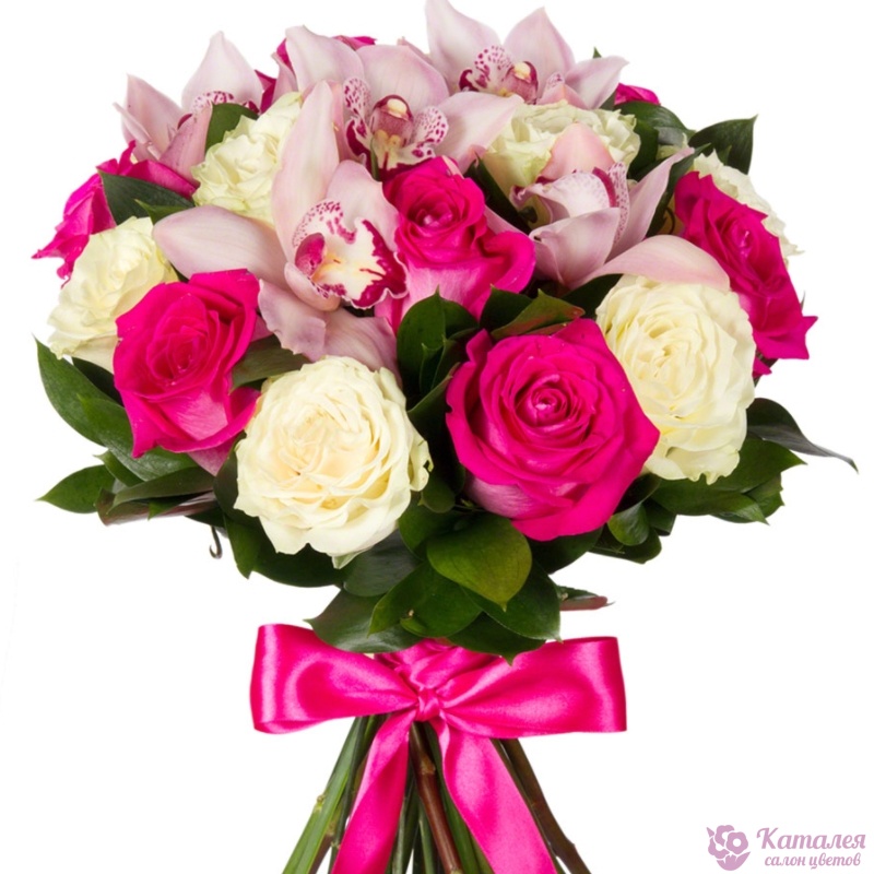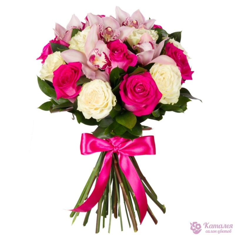Букет из роз и орхидей "Скромное обаяние"