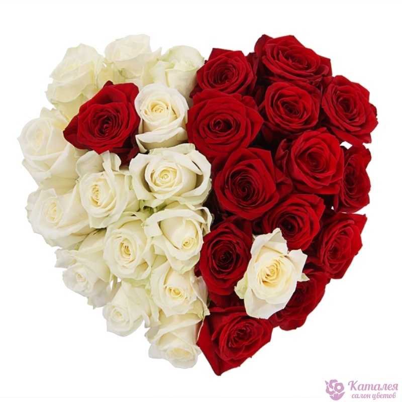 Композиция "Гармония сердца" из 31 красной и белой розы