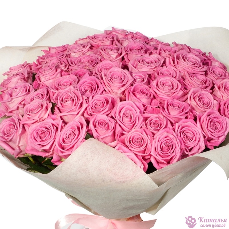 Букет состоит из 45 розовых роз, красивая упаковка, атласная лента.