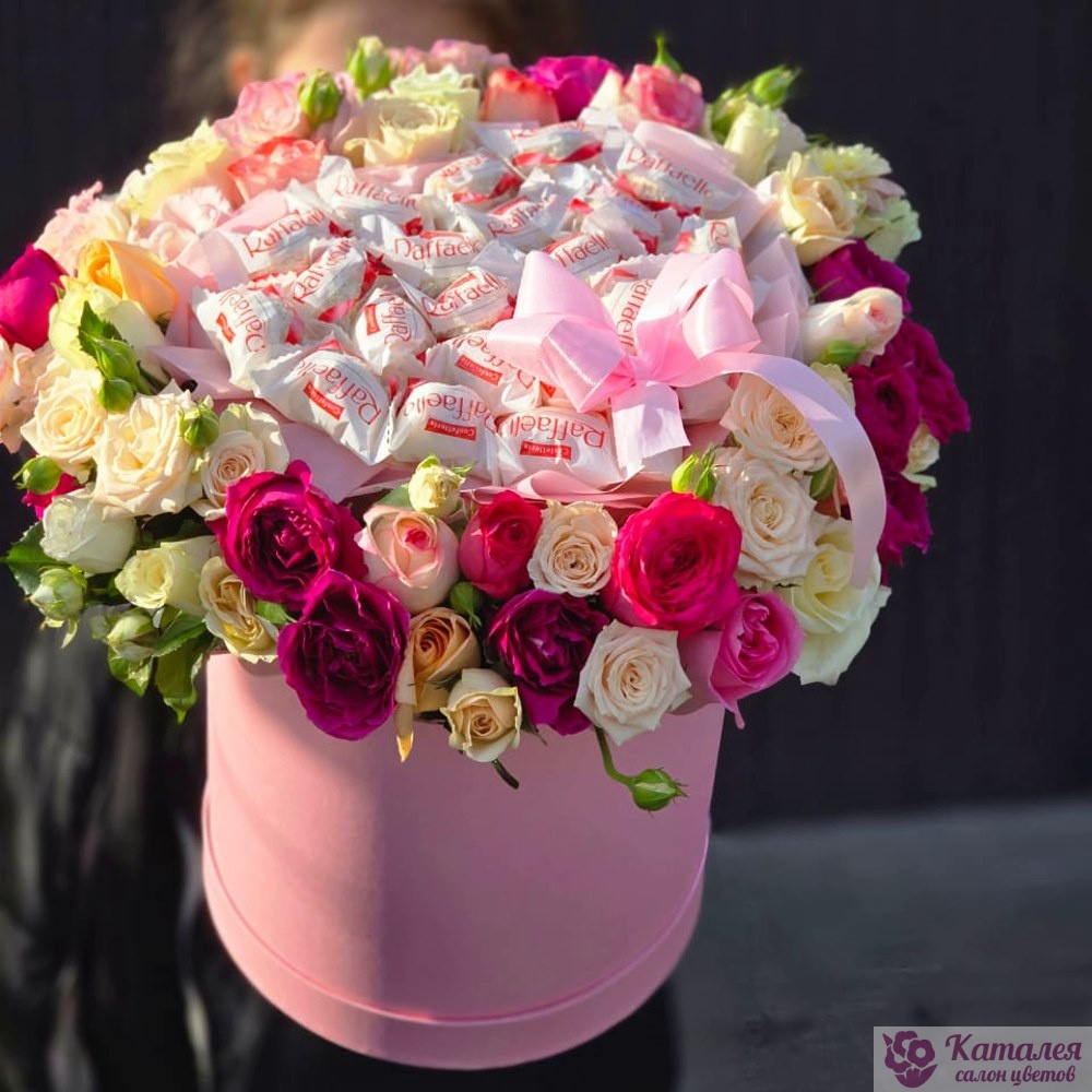Коробочка из кустовых роз и Raffaello