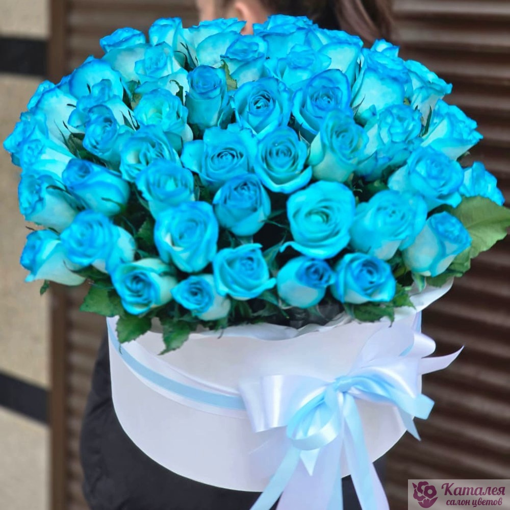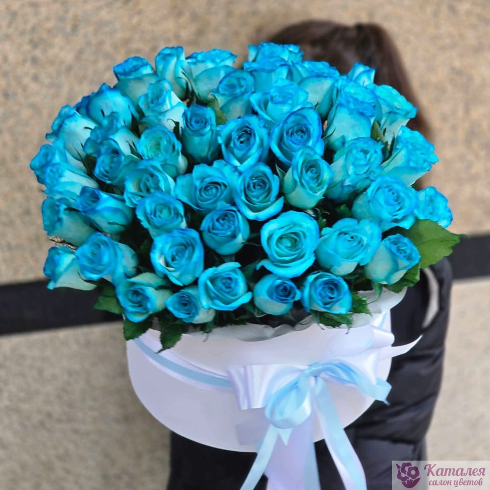 55 синих роз в коробке