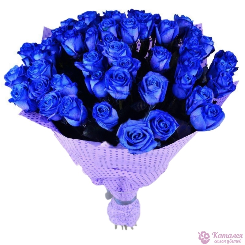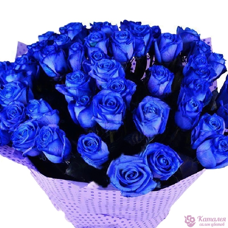 Букет состоит из 51 синяя роза, красивая упаковка, атласная лента.