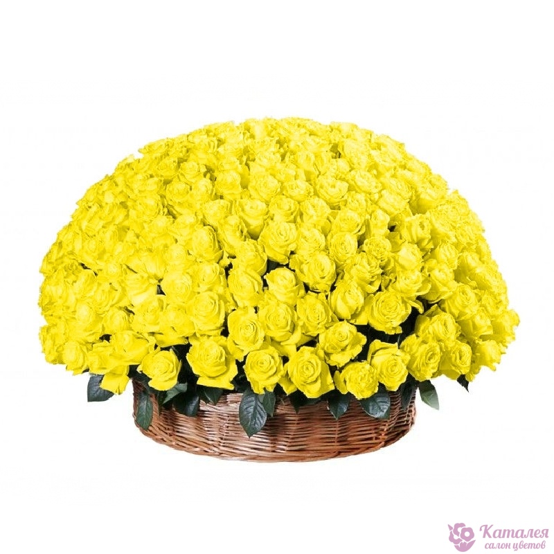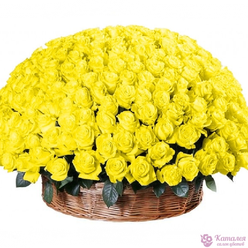 Букет состоит из 201 желтая роза, зелень, корзина, оазис.