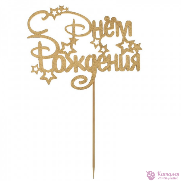 Украшение для букетов в виде топпера "С Днем рождения".