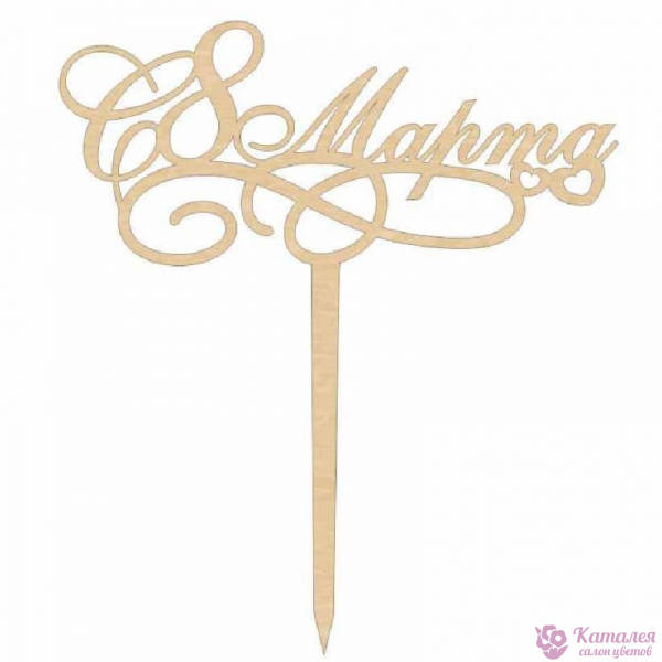 Украшение для букетов в виде топпера "С 8 марта".