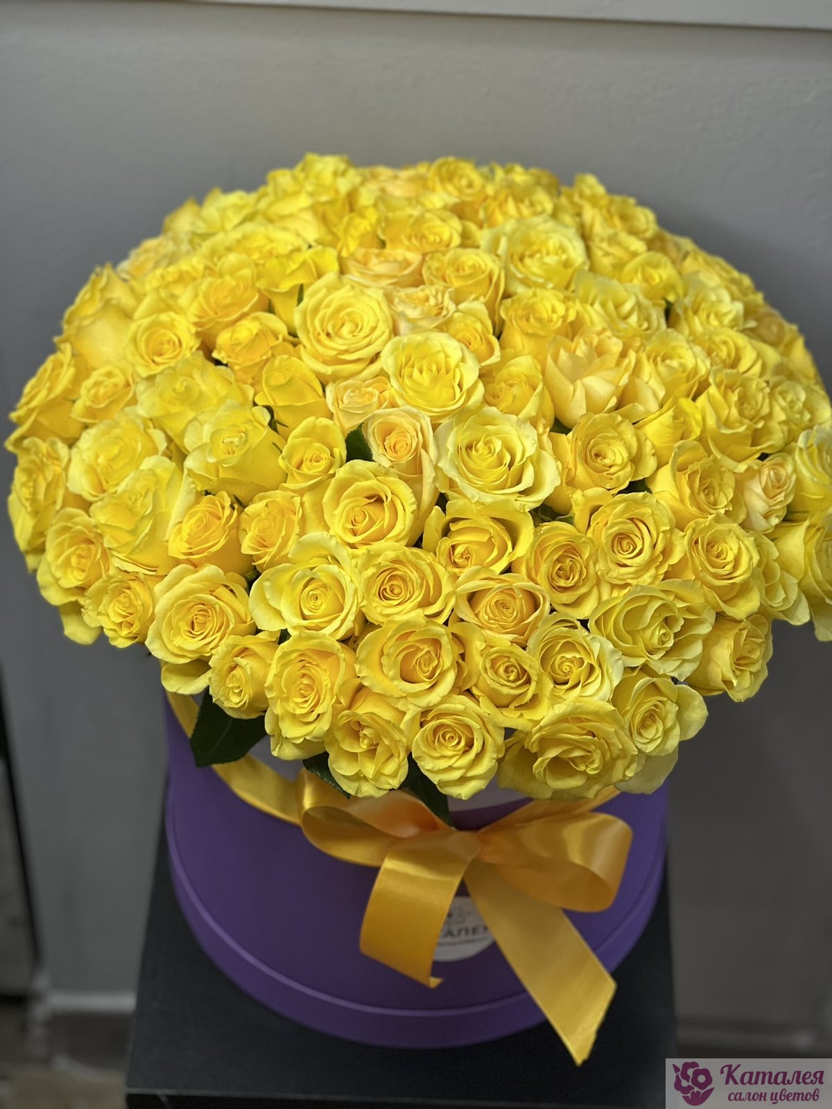 101 желтая роза в коробке